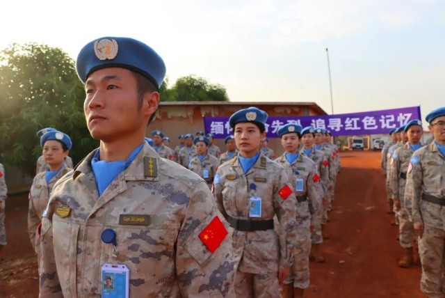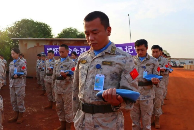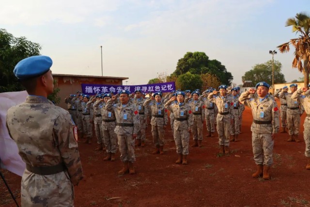 在万里之外中国第13批赴南苏丹(瓦乌)维和医疗分队,庄严组织“缅怀革命先烈、追寻红色记忆”纪念活动,向革命先烈和牺牲的维和英雄致以崇高敬意与深情追思。队员们升国旗、唱国歌、重温维和军人誓词,向中国参加国际维和行动30多年来牺牲的16名中国军人肃立默哀,并集体在纪念横幅上签字,以此寄托对维和英雄的敬仰、哀思之情。
