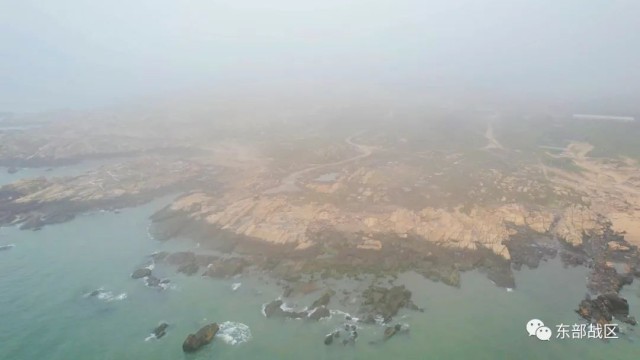 在天然崖壁、岸滩礁石、浓浓雨雾中