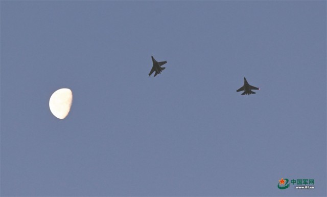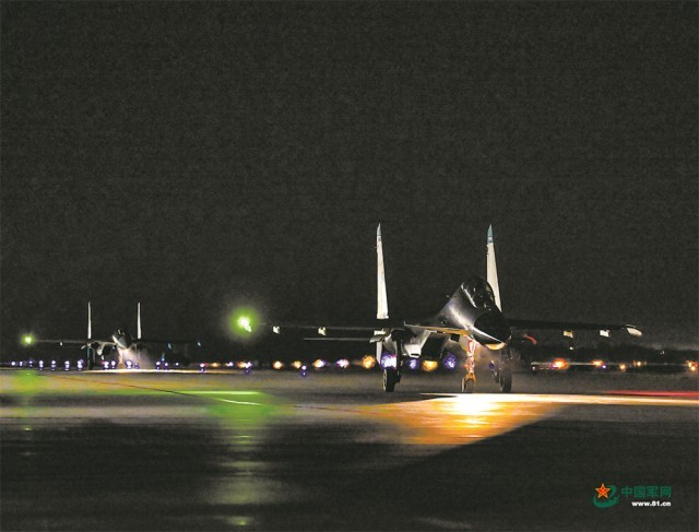 夜幕下,战机滑出跑道。