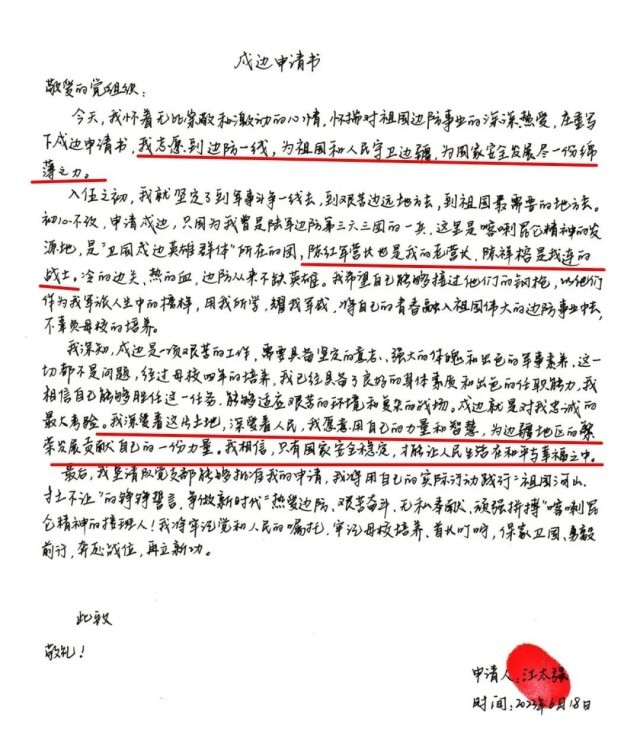 一份份戍边申请书