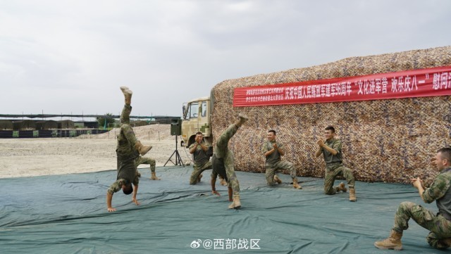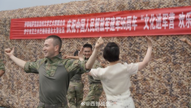 八一建军节来临之际,为庆祝中国人民解放军成立96周年,伊犁军分区某部联合驻地多单位开展”文化进军营,欢乐庆八一“主题活动。(吴志昊、夏英健)