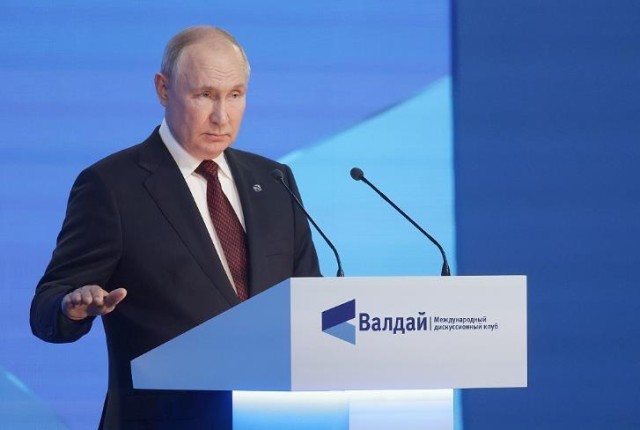 俄罗斯总统普京当地时间5日在“瓦尔代”年会全体会议上发表主旨演讲。(视觉中国)