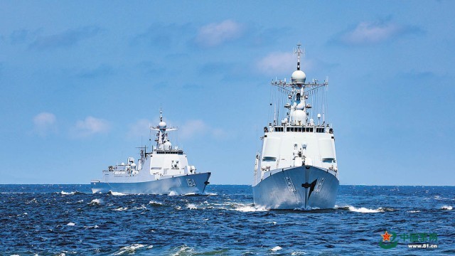 秋夜,海军某驱逐舰支队舰艇编队正在某海域破浪前行。突然,急促的警报声响起,一场编队对岸打击训练随即展开。