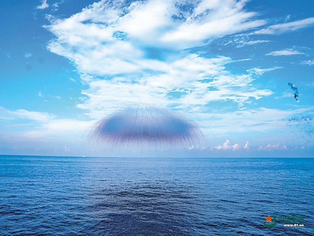 “敌”导弹来袭,空中特情突至。编队指挥员立即命令各舰大角度转向机动规避,同时对空发射干扰弹,协同抗击来袭目标,成功化解空中威胁。