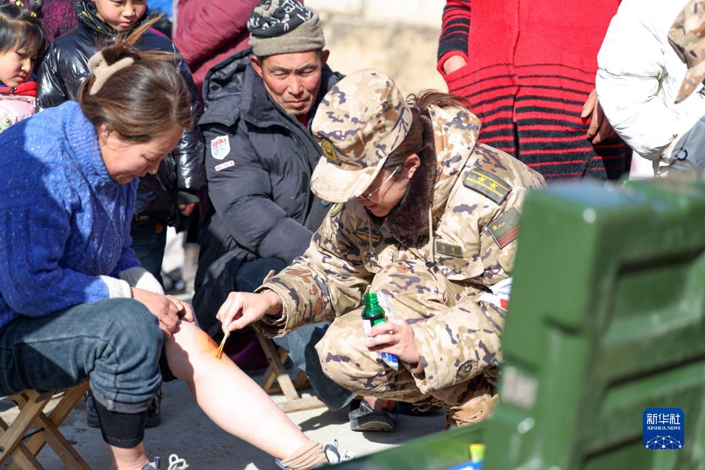 12月20日,武警甘肃总队医院医疗小分队在积石山县刘集乡阳屲村开展医疗巡诊。新华社发 (侯崇慧 摄)