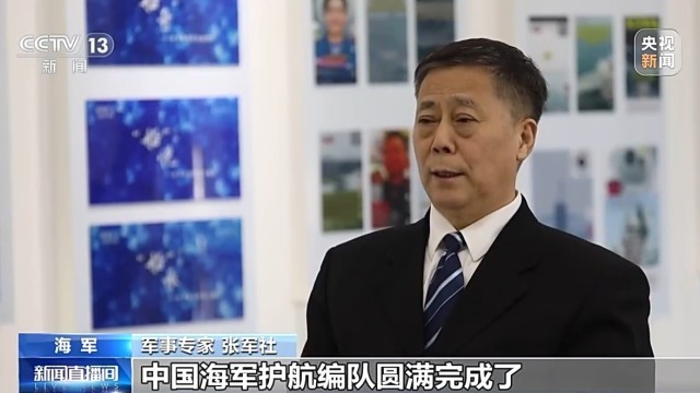 海军军事专家 张军社:中国海军护航编队对中外船舶的需求做到了有求必应,确保了被护船舶100%安全,提供了力所能及的医疗救护和装备维修保障,有效维护了国际海上通道的安全,同时还执行了很多非战争军事行动,这是对中国所倡导的人类命运共同体和海洋命运共同体理念的有力践行。