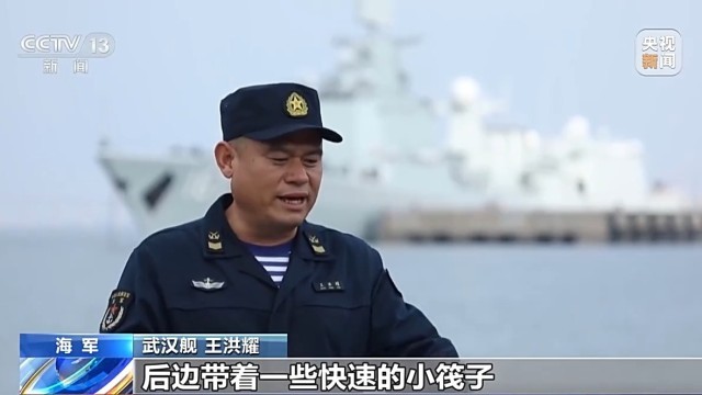 海军武汉舰 王洪耀:海盗船的母船,后边带着一些快速的小筏子,母船穿插到我们编队中间。当时我们处置的是直升机直接起降,在母船的顶上悬垂,然后上面的特战队员枪都是对着它的,它没办法只能往后退,我们编队正常航行。