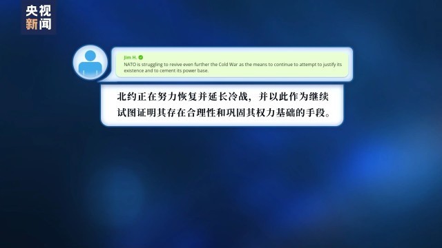 “北约正在努力恢复并延长冷战,并以此作为继续试图证明其存在合理性和巩固其权力基础的手段。”
