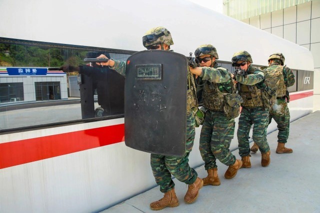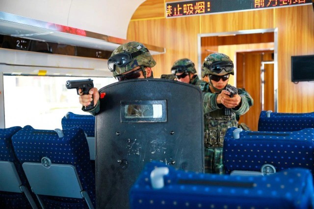 “据公安机关通报,有两名暴恐分子劫持人质藏匿于高铁车厢内,上级命令我部迅速赶往处置……”仲夏时节,突然响起急促的哨音,一场以火车反劫持为背景的实战化演练骤然打响。