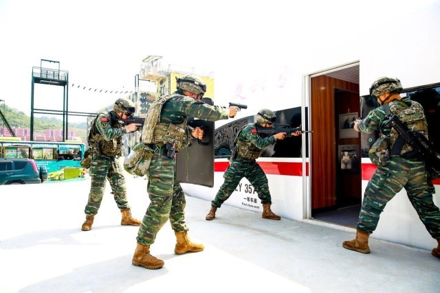 “3、2、1,突击!”随着指挥员一声令下,官兵们沿多个方向迅速发起进攻,在经过激烈的交火后,“暴恐分子”被全部抓获,任务圆满完成。