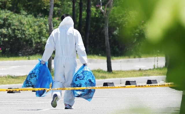 当地时间2024年6月2日,韩国京畿道,官员收集携带垃圾等污染物的气球。 澎湃影像 图