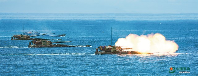 铁甲踏浪,炮声轰鸣。炎炎夏日,东部战区陆军某旅开展海上训练,锤炼两栖分队综合作战能力。