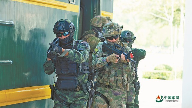中方指挥员介绍:“此次反恐特情处置训练,重点围绕突击兵力使用、任务编组、行动实施等环节组织。同场联训不仅锤炼搜剿实战技能,还进一步增进了双方参训官兵的互信和友谊。”