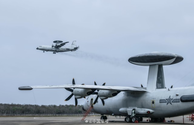 近日,南部战区海军航空兵某部开展低气象条件下预警侦察飞行训练。训练中,多架预警机分批次相继进行预警监视、侦察巡逻、指挥引导等实战化课目训练,有效锤炼了战勤机组在复杂气象环境下技战术水平。