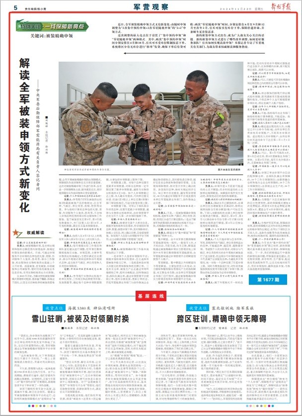 新的被装申领方式出台,成为广大战友关心关注的话题。新的被装申领方式进行了哪些改革调整,如何更好服务部队?官兵如何实现高效申领?解放军报记者专访了军委机关有关部门,为战友带来权威解读和服务指南。