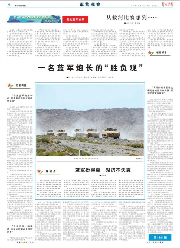演训导演部评价他是“一个有指挥头脑的蓝军炮长”,交过手的官兵说他有勇有谋、难以捉摸。在刘珞阳的进阶之路背后,我们能看见一支部队的战斗力之变。