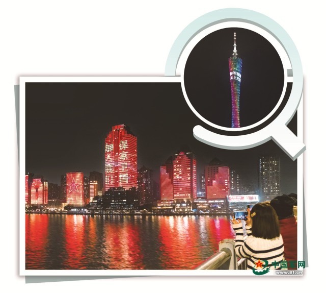 广州市举办征兵主题灯光秀,城市地标为国防点亮。陈美 摄