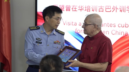 友谊在延续,感情在升华。中国空军特地为古巴学员送上书法作品和主战装备纪念相框。活动现场,曾在华培训古巴飞行学员纷纷感慨:“我们相隔遥远,但我们相互惦念。跨越半个多世纪,这道友谊的航迹还在向远方延伸……”