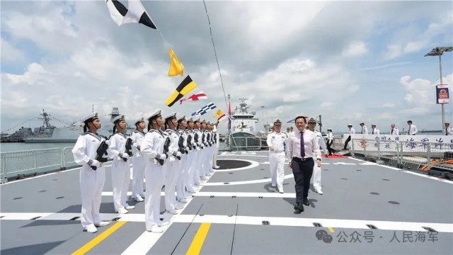 ▲新加坡官方代表登舰参观 图源“人民海军”微信公众号