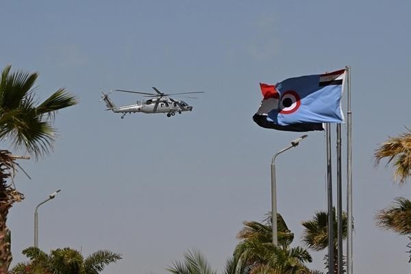 4月27日,埃及空军某基地,参加中埃“文明之鹰-2025”空军联合训练的中国空军直-20直升机进行训练。余红春/摄