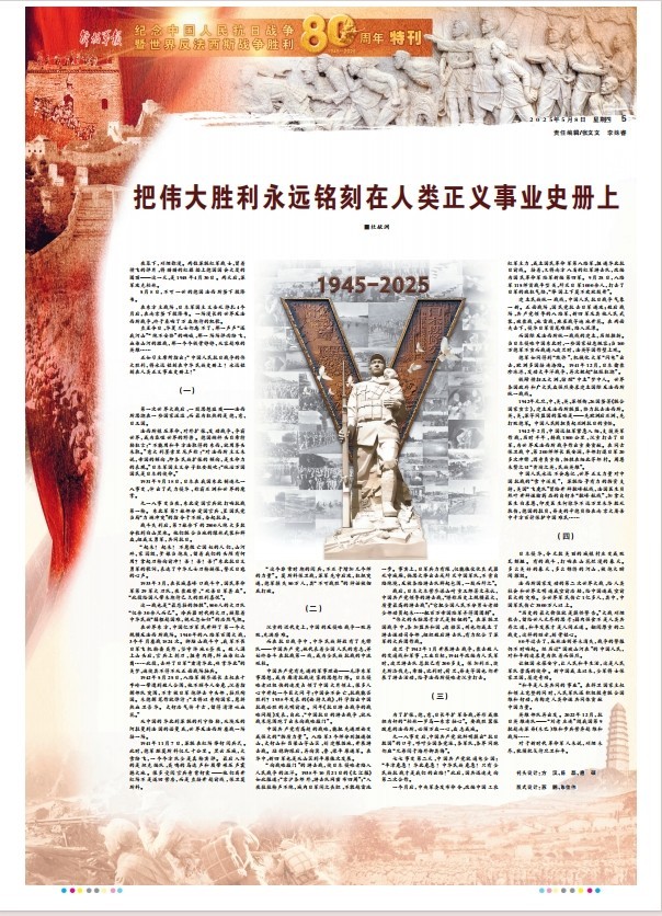 今年是中国人民抗日战争暨世界反法西斯战争胜利80周年。即日起,解放军报推出《纪念中国人民抗日战争暨世界反法西斯战争胜利80周年》特刊。