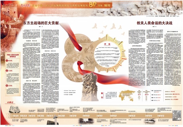 特刊紧扣“铭记历史、缅怀先烈、珍爱和平、开创未来”主题,全面深刻阐释中国人民抗日战争胜利的伟大历史意义,充分反映中国人民抗日战争作为世界反法西斯战争东方主战场的历史地位和对世界反法西斯战争胜利的重大贡献,深入解读抗战精神的丰富内涵和时代价值,立体呈现中国始终致力于促进世界和平与发展、推动构建人类命运共同体的责任担当,讴歌正义必胜、和平必胜、人民必胜的伟大真理,激发全军官兵投身强军实践、履行使命任务的强大精神动力。
