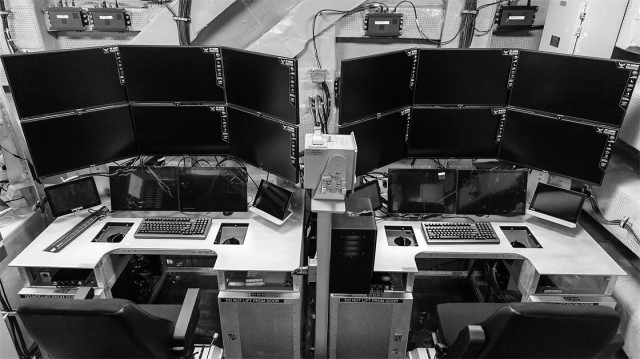 乔治·布什号航母无人空战中心(UAWC)操控台。供图:阳 明