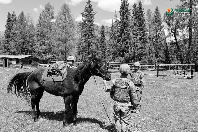 “候鸟哨所”的巡逻道路大多为崎岖山路,乘马巡逻依然是最主要的巡逻方式,这是出发前哨所官兵整理马鞍。