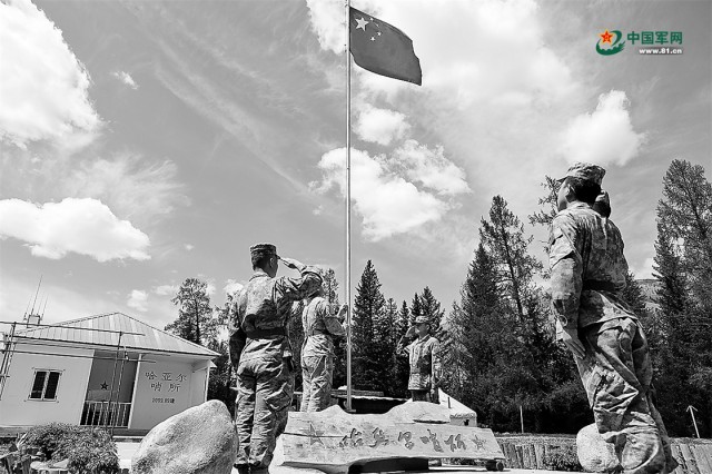 尽管身处季节性哨所,官兵每天清晨都会举行庄严的升国旗仪式。