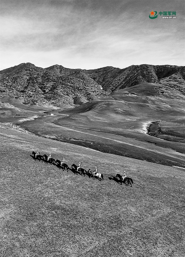 哈亚尔哨所官兵乘马巡逻。