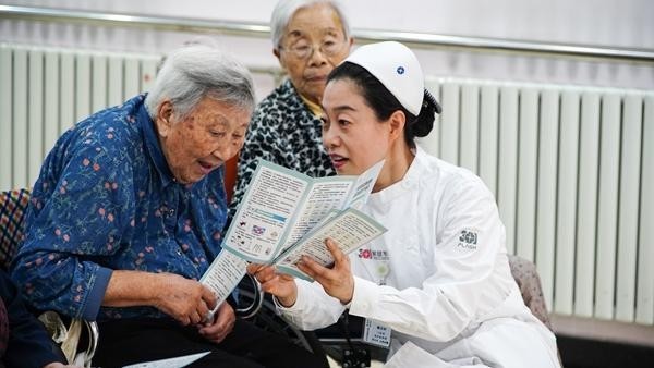 2024年9月9日,秦玉玲护士长在羊坊店敬老院开展“救在身边,温暖护航”主题科普宣教。陈政颖/摄