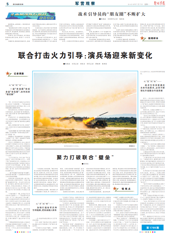 火力策划、辅助决策、战场侦察……随着越来越多课题成果不断在实践中得到应用,来自不同军兵种的战术引导员,心中的“问号”被一个个拉直。他们共同执行引导打击任务,将多军兵种协同的多个课目融入实战化训练,不断打磨引导细节、共研协同对策、提升战法水平。