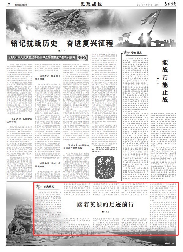 在今天这个特殊的日子里,我们重温英烈的抗战事迹,发扬伟大抗战精神,必将凝聚起14亿多中华儿女奋勇前行的强大精神力量。