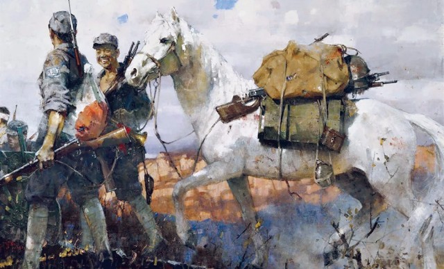 我们都是神枪手(油画,入选纪念中国人民抗日战争暨世界反法西斯战争胜利七十周年全国美展) 谷 钢作