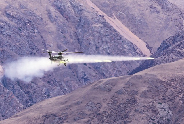到达目标空域,编队借助地形进行低空突防,向“敌”前沿阵地快速突进。俯冲、瞄准、射击……一枚枚火箭弹呼啸而出。伴着震耳欲聋的爆炸声,多个“敌”目标被成功摧毁。