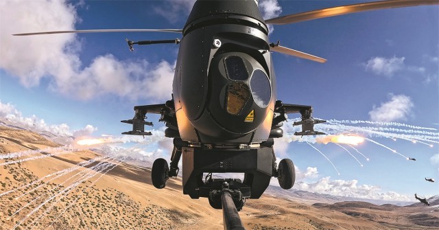 “前方空域发现不明飞行物!”接到攻击命令,两架武装直升机迅速脱离编队,低空隐蔽接近目标,从不同方向实施打击。