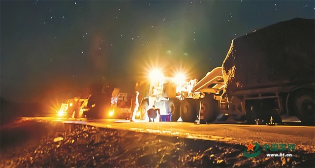 凌晨时分,新的行动指令传来。官兵快速行动,继续向目标地域机动,运输车队宛如一条钢铁洪流向前奔涌。