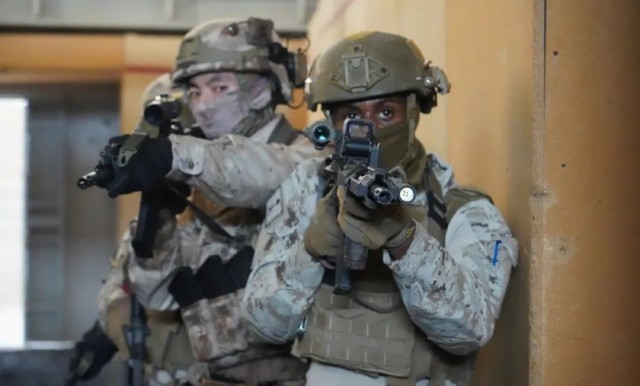 ▲中沙双方参训队员正在进行房屋搜索