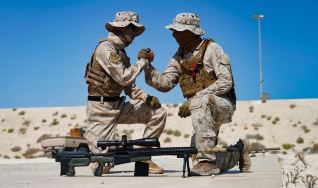 ▲中沙双方狙击手进行交流