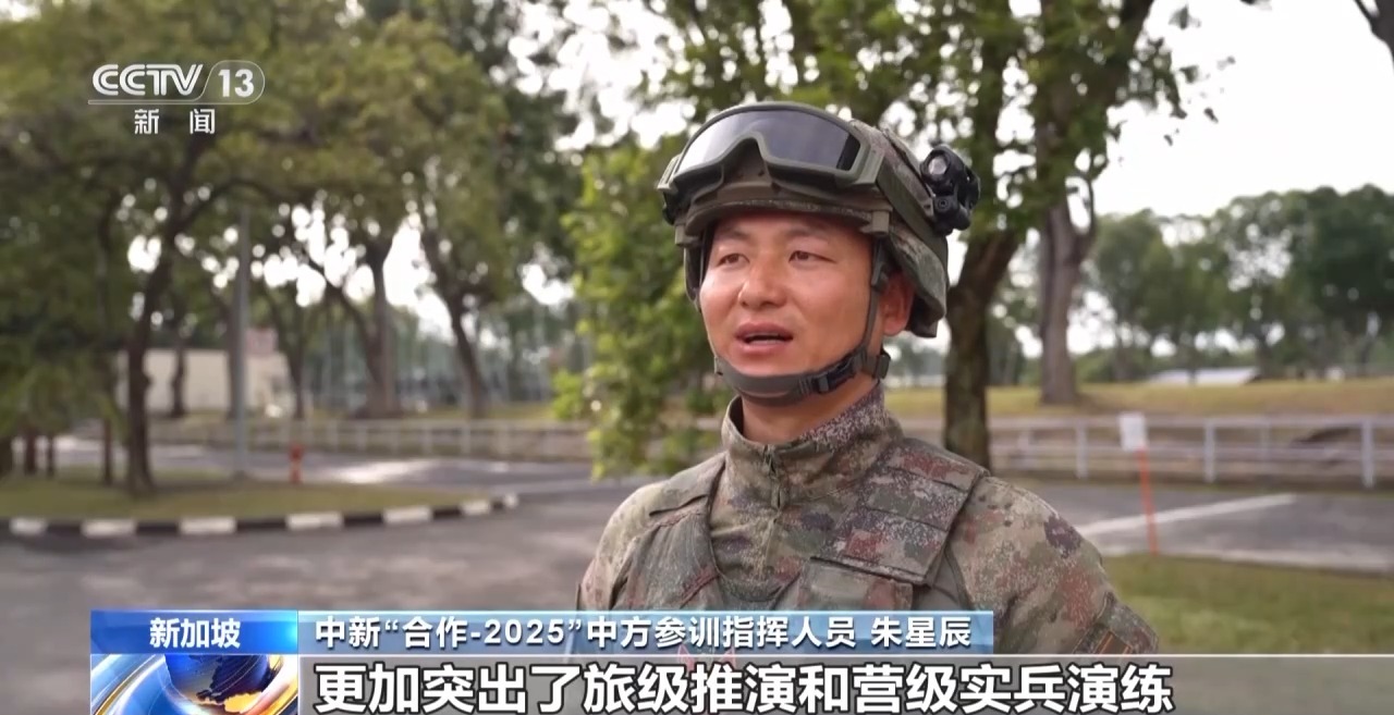 中新“合作-2025”中方参训指挥人员 朱星辰:此次联训,相比前两年更加突出了旅级推演和营级实兵演练。未来几天,双方会通过混合编组、联合指挥、协同行动等方式,交流现代城市反恐作战的新战法、新思路。同时,我们也希望通过此次联训,进一步增进中新两军的传统友谊。