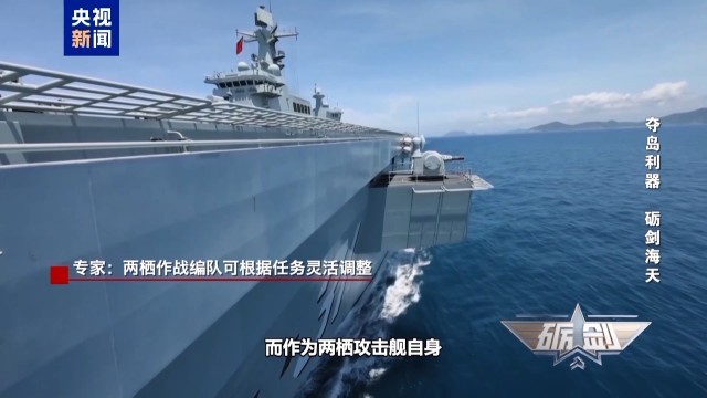 军事专家 曹卫东:无论是航母还是两栖攻击舰,它周边的配置都是相似或相同的,只是在具体完成不同海域或不同时间的军事任务时,它的数量有所增加或减少。比如说水下潜艇,有时候可能只有一艘,有的时候就需要两艘。在高强度作战的时候,可能就要有四五艘水面作战舰艇来进行护卫,而低强度作战时,可能就有两艘。