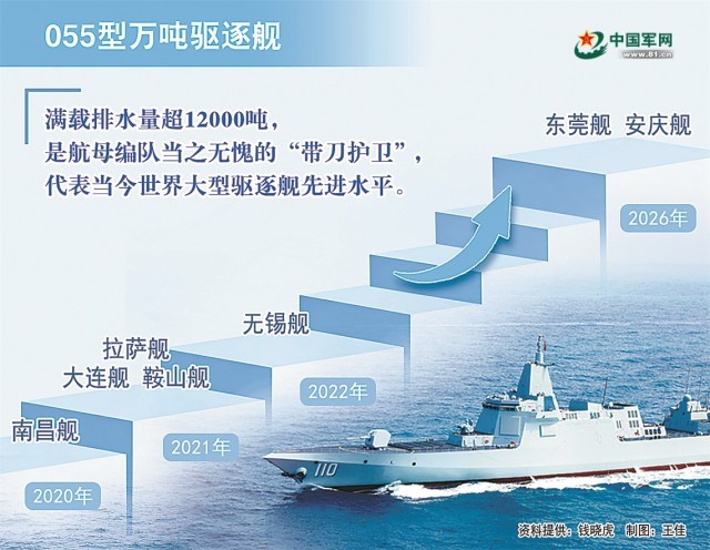 从2020年初055型驱逐舰首舰南昌舰入列以来,人民海军大型驱逐舰在短短数年内,实现从无到有、从少到多、从“单舰成军”到“体系制胜”的跨越式发展。“万吨大驱”规模化列装、体系化运用,不仅标志着海军主战装备数量与质量的双重跃升,更折射出海军体系作战、远海作战理念的全新变革,大幅提升人民海军在远海远域遂行多样化军事任务的能力,为坚决维护国家主权、安全、发展利益提供坚实装备支撑,也为维护地区和平稳定与世界海洋安全注入源源不断的中国力量。
