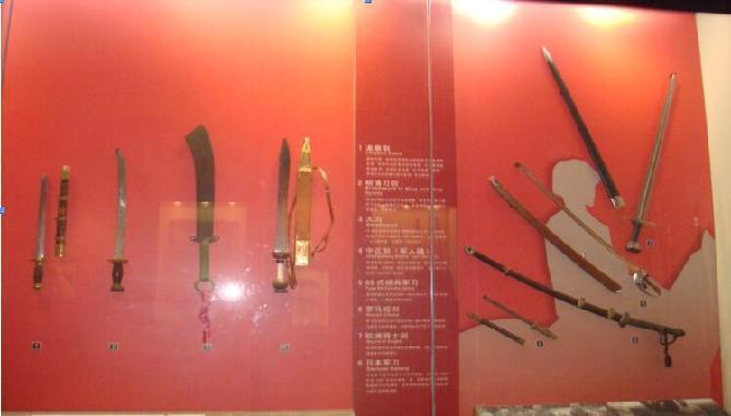 左数第四把军刀即为“夜战喜峰口”时使用的兵器