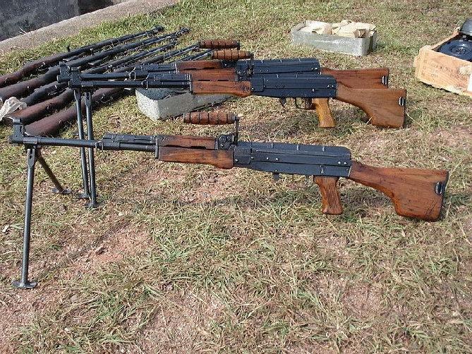 同样名垂青史的还有美国M60通用机枪。它从1958年装备美军至今,直至今日仍是美国海军陆战队的主要机枪。这款枪也是史泰龙在拍摄《第一滴血》中用过的。M60机枪配图为越战时的著名照片,为了避免枪支进水,一黑人士兵高举M60机枪渡河,最终该士兵被汹涌的河水吞没牺牲,为这款枪支注入了生命的力量。而拍摄此张图片的摄影师凭借照片荣获当年普利策新闻奖。