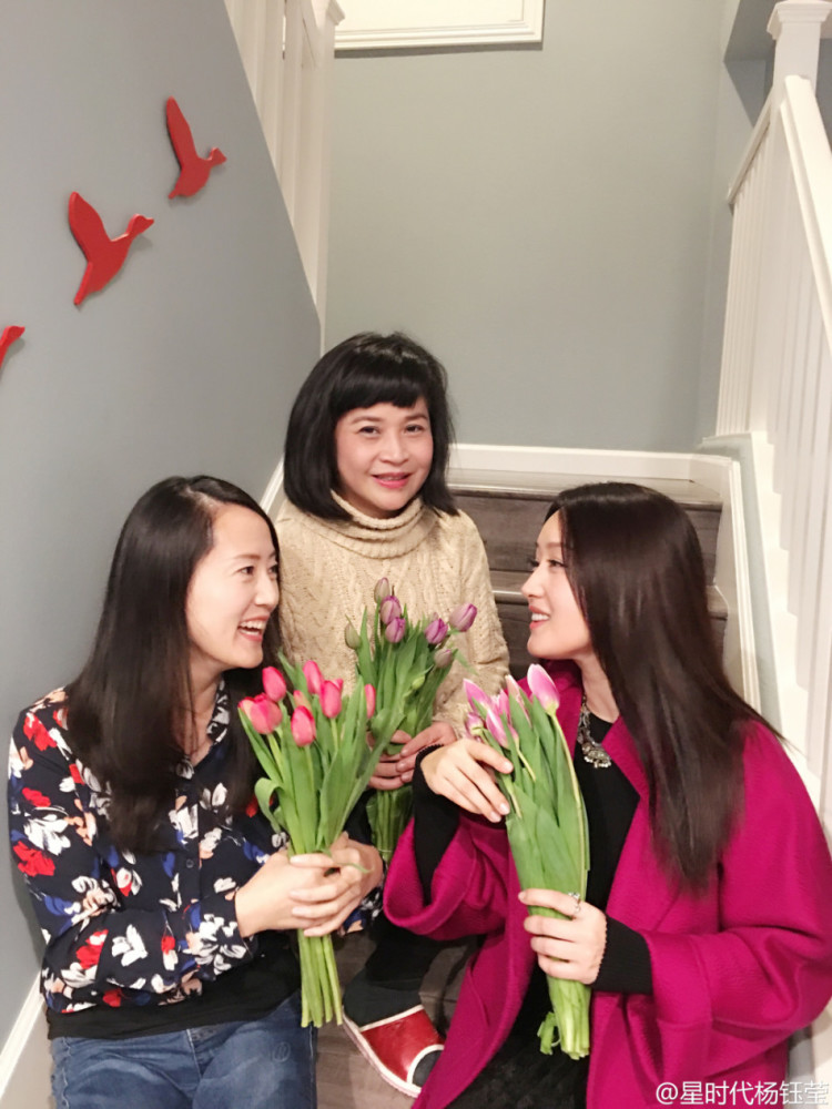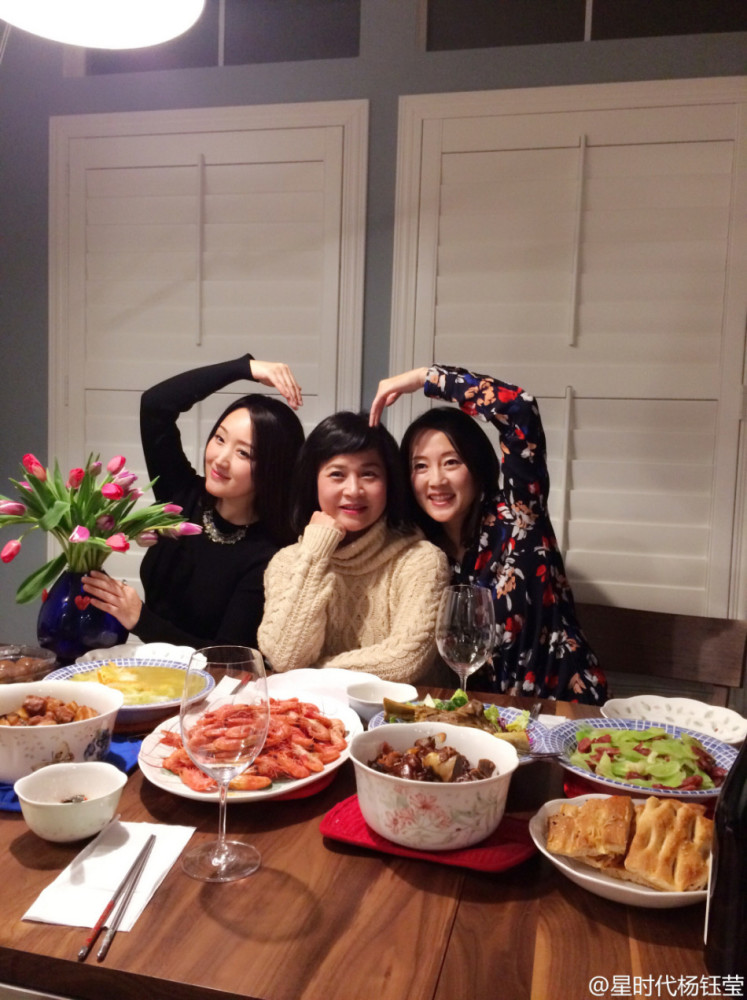 杨钰莹和两名女性朋友先是聚餐,品尝美食。