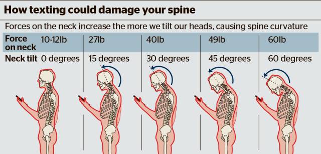 “短信脖”: 低头60°,相当于承重50斤