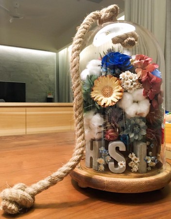 3月6日是修杰楷34岁生日,贾静雯为了给老公惊喜,准备了一个犹如“金钟罩顶”的干燥花盆栽,特别的造型隐含着感谢:“如同你守护我们全家人的保护罩~谢谢用心的修老爷!”