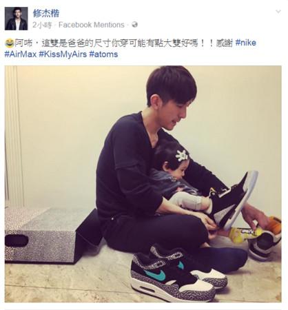 修杰楷见状就温柔地帮咘咘左脚的鞋子先脱下来,而这一幕刚好被捕捉到,就上传到脸书和大家分享,并写下:“阿咘,这双是爸爸的尺寸你穿可能有点大双好吗”,还配上被逗得哭笑不得的表情符号。(ETtoday/文)