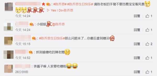 陈乔恩工作室21日更新微博,“陈老板!NoNoNoNo,放下手上的糖→_→”,还配上一个摇晃食指的动图意指不行、不可以。照片中可以看见陈乔恩左手掀起糖果盖子,右手正伸下去碰到糖果,正要得逞之时却被抓包了!