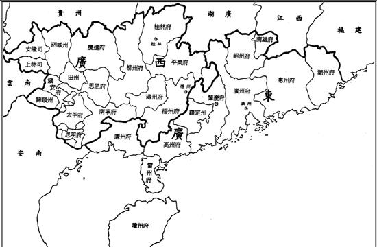 明朝后期两广地区行政区域图